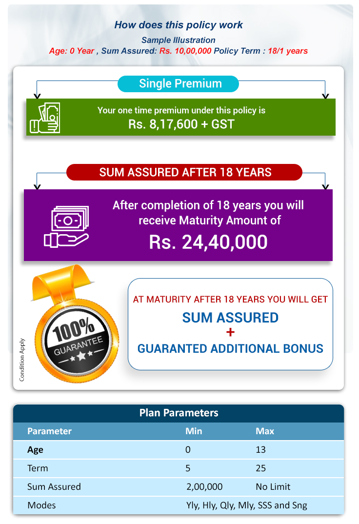 Premium Waiver Rider option, will ensure the planned returns will be payable to the child irrespective of your presence.